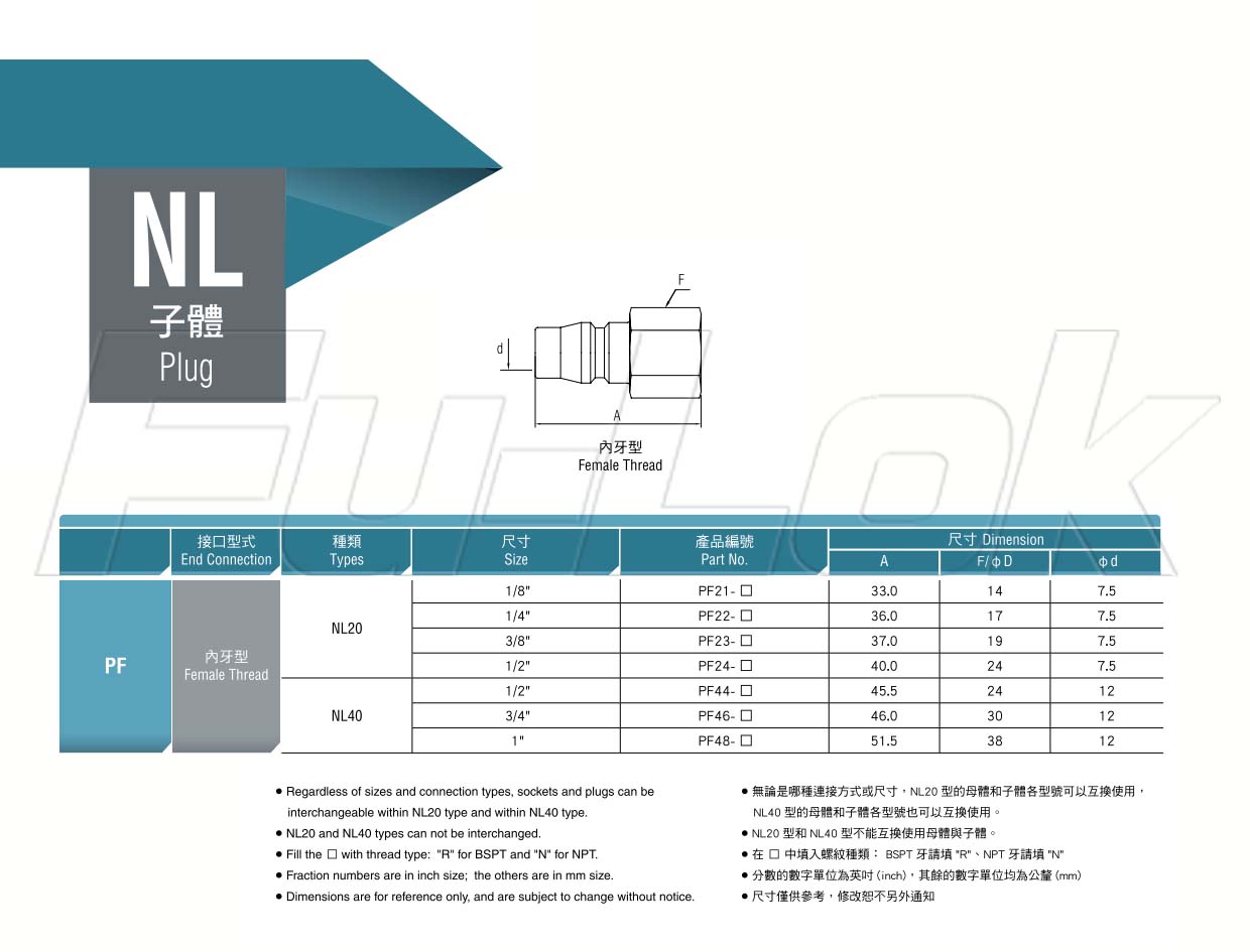 1.Size: NL20 Series: 1/8"~1/2"NL40 Series: 1/2"~1"