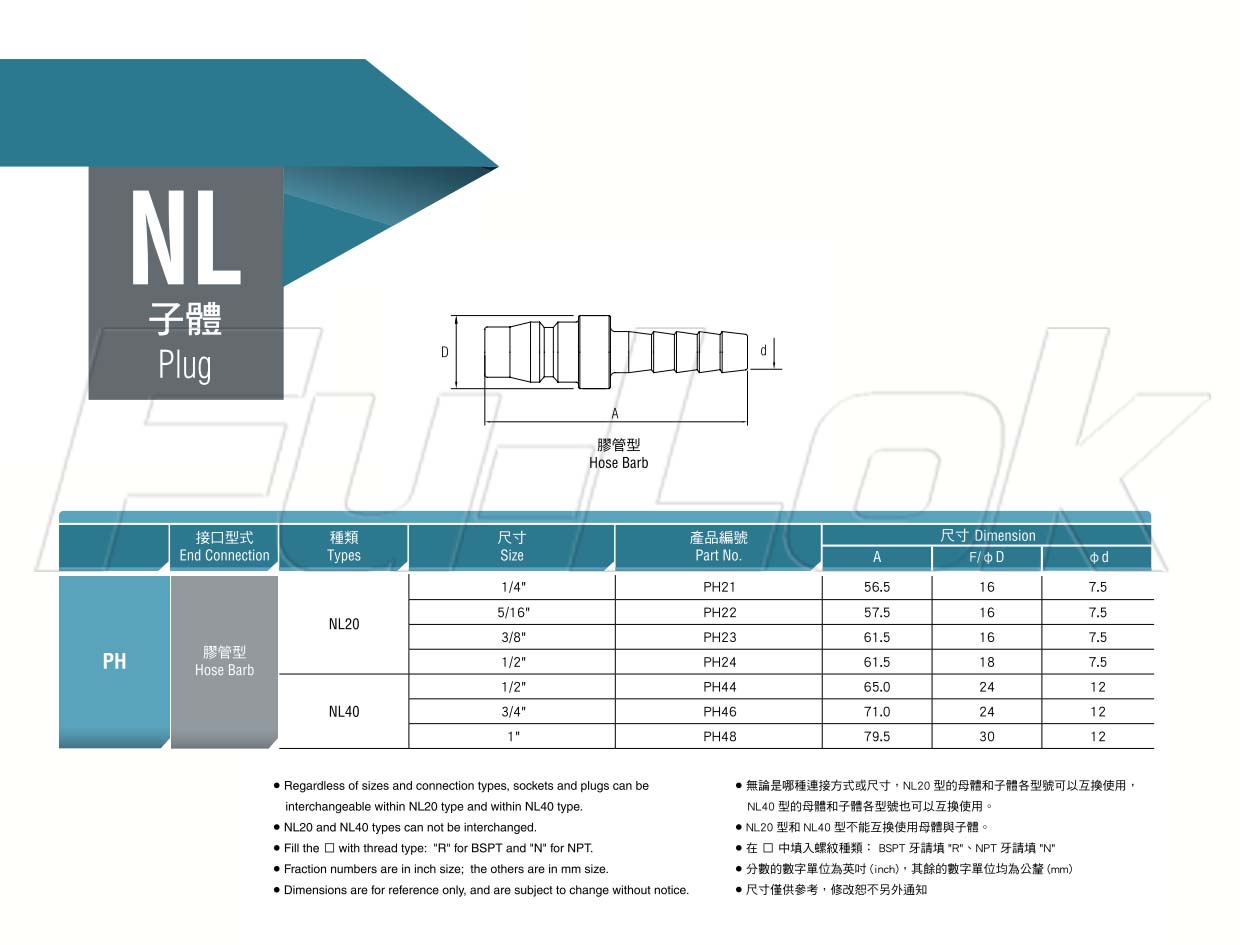 1.Size: NL20 Series:1/4"~1/2"NL40 Series:1/2"~1"