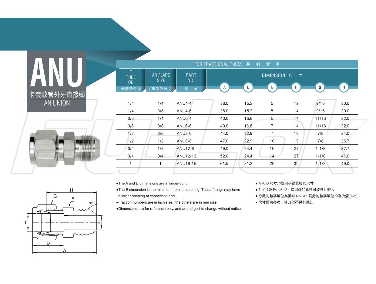 Compression End1.For Fractional Tube:(OD)1/16"~1"