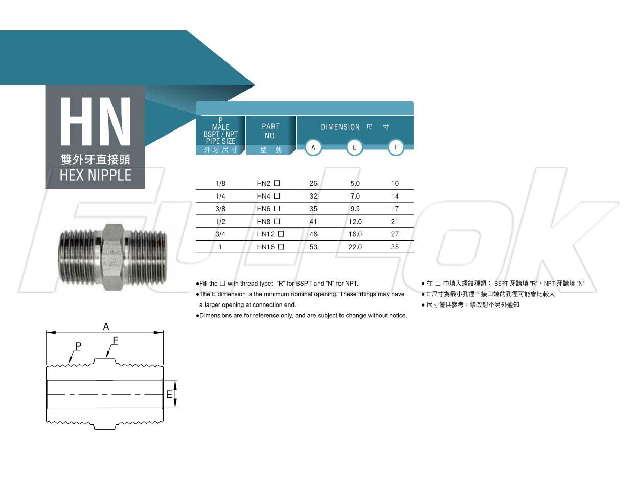 1.Thread Size: 1/8"~1"2.Thread Type: BSPT Thread(R)、NPT Thread(N)