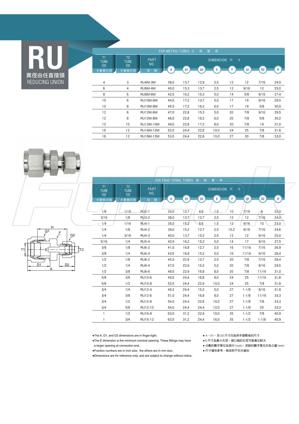 2.For Fractional Tube:(OD)1/16"~1"