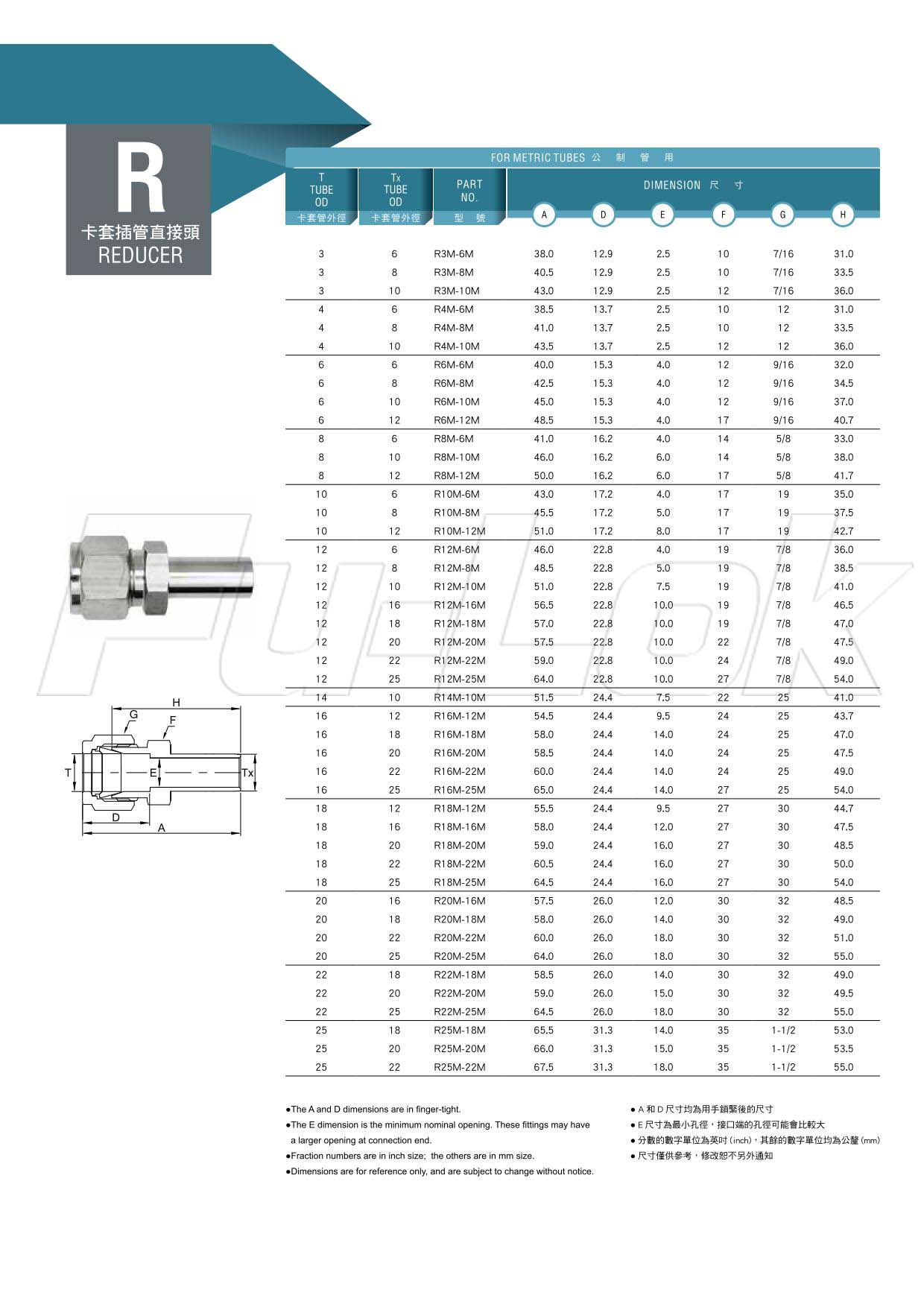 Compression End1.For Metric Tube:(OD)3mm~25mm