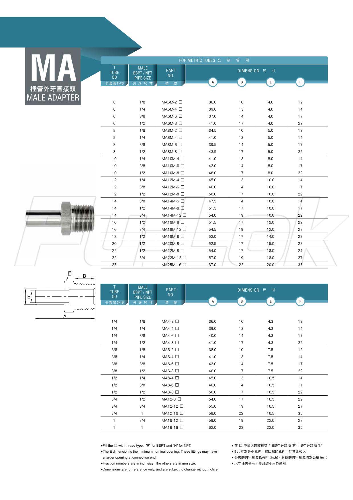 Tube End1.Metric Tube:(OD)6mm~25mm