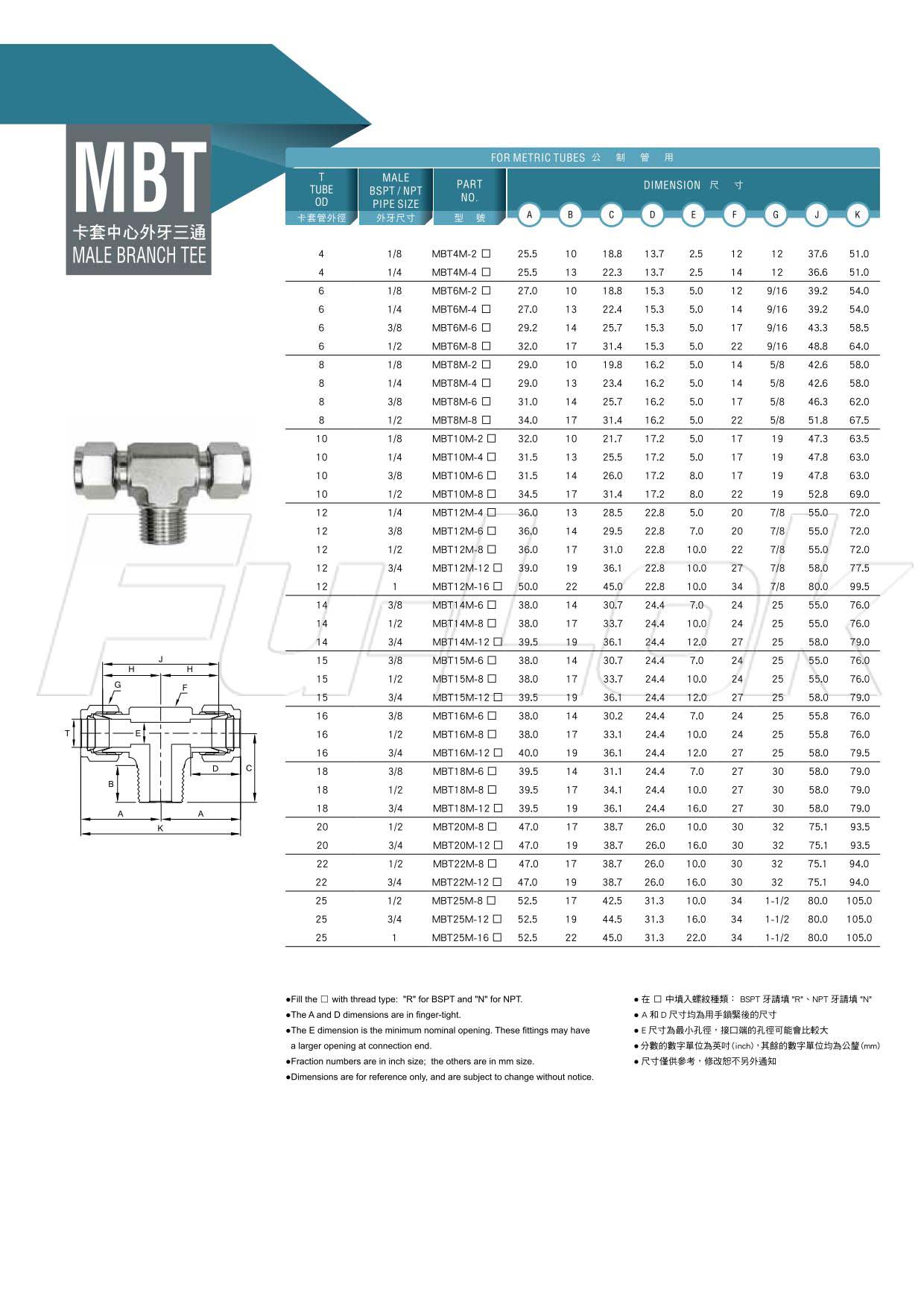 Compression End1.For Metric Tube:(OD)4mm~25mm