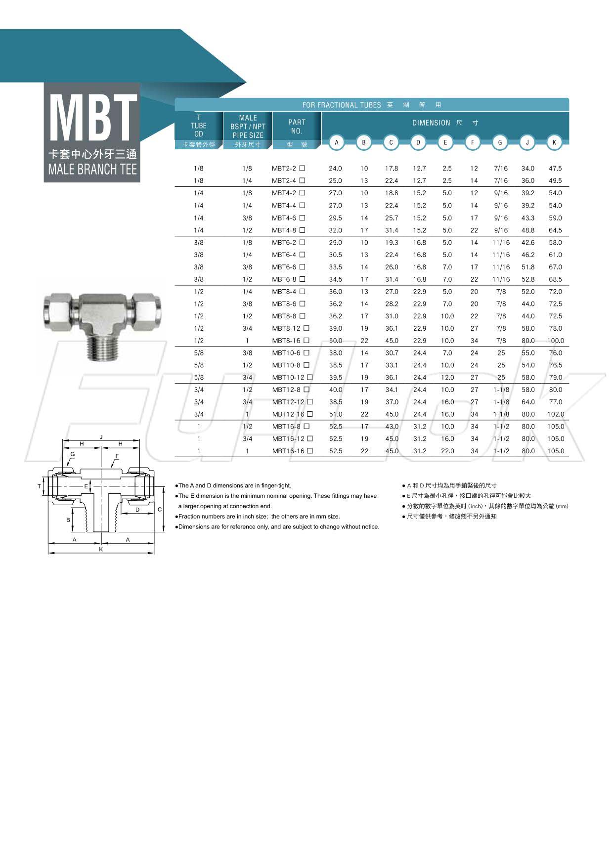 2.For Fractional Tube:(OD)1/8"~1"