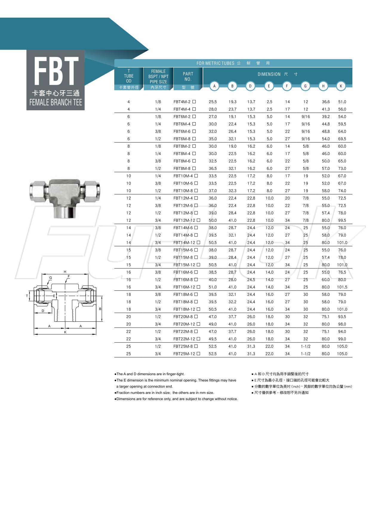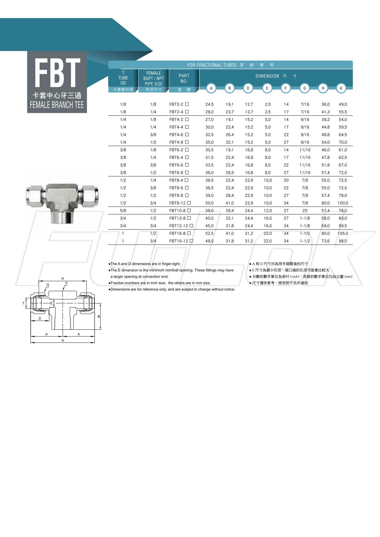 2.For Fractional Tube:(OD)1/8"~3/4"