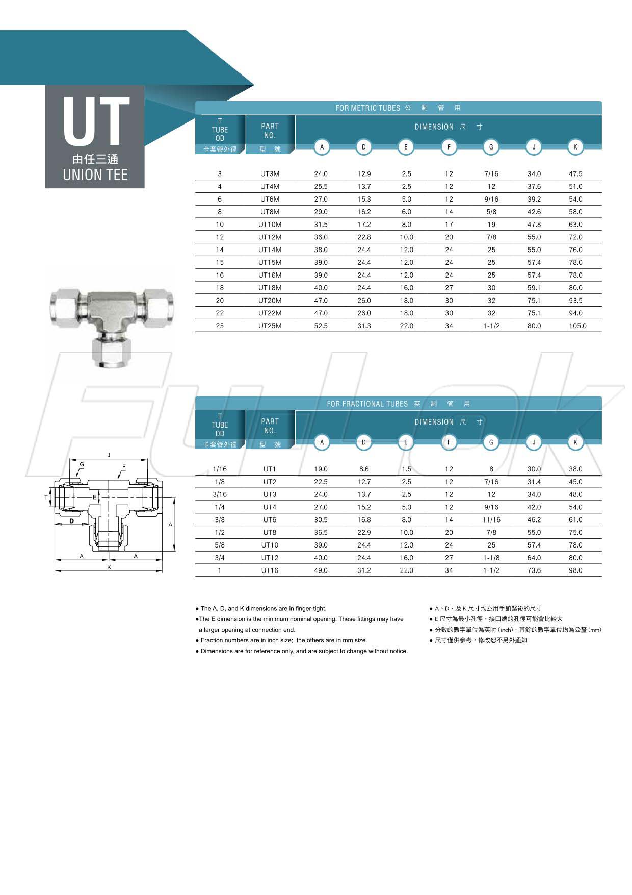 2.For Fractional Tube:(OD)1/16"~1"