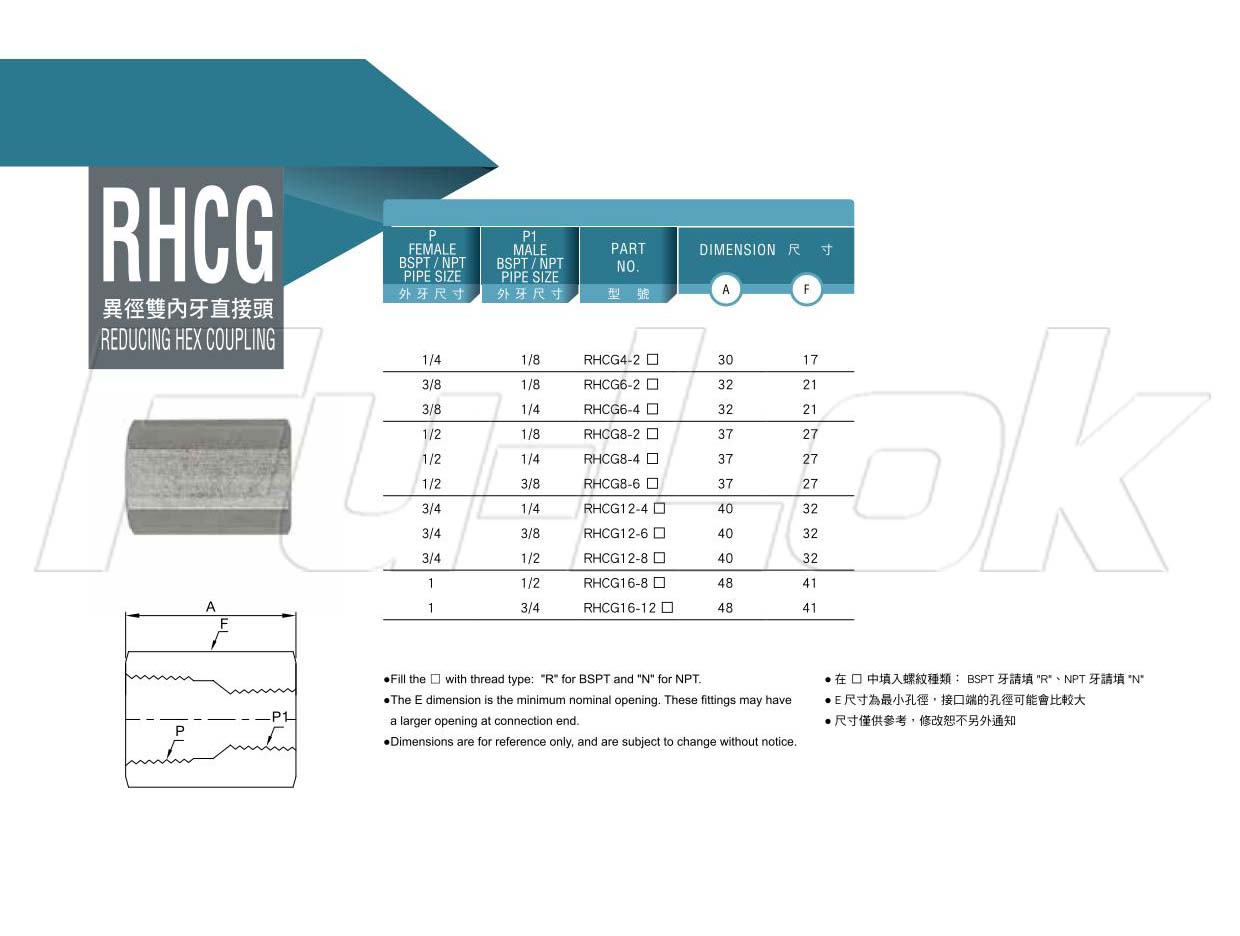 1.Thread Size: 1/8"~1"2.Thread Type: BSPT Thread(R)、NPT Thread(N)