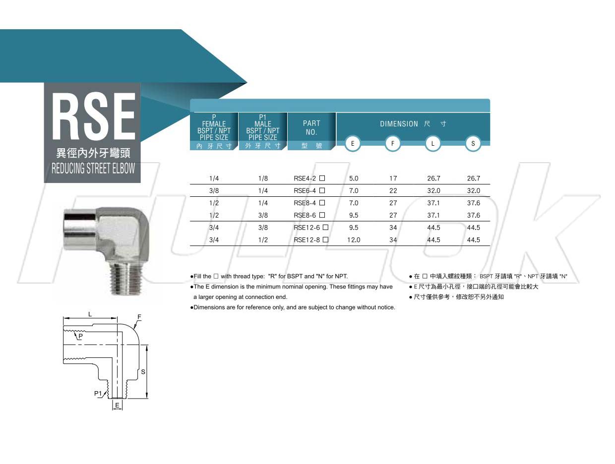 1.Female thread Size: 1/4"~3/4"2.Male thread Size: 1/8"~1/2"