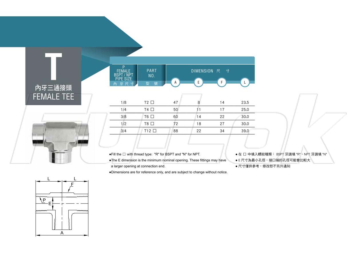 1.Thread Size: 1/8"~3/4"2.Thread Type: BSPT Thread(R)、NPT Thread(N)
