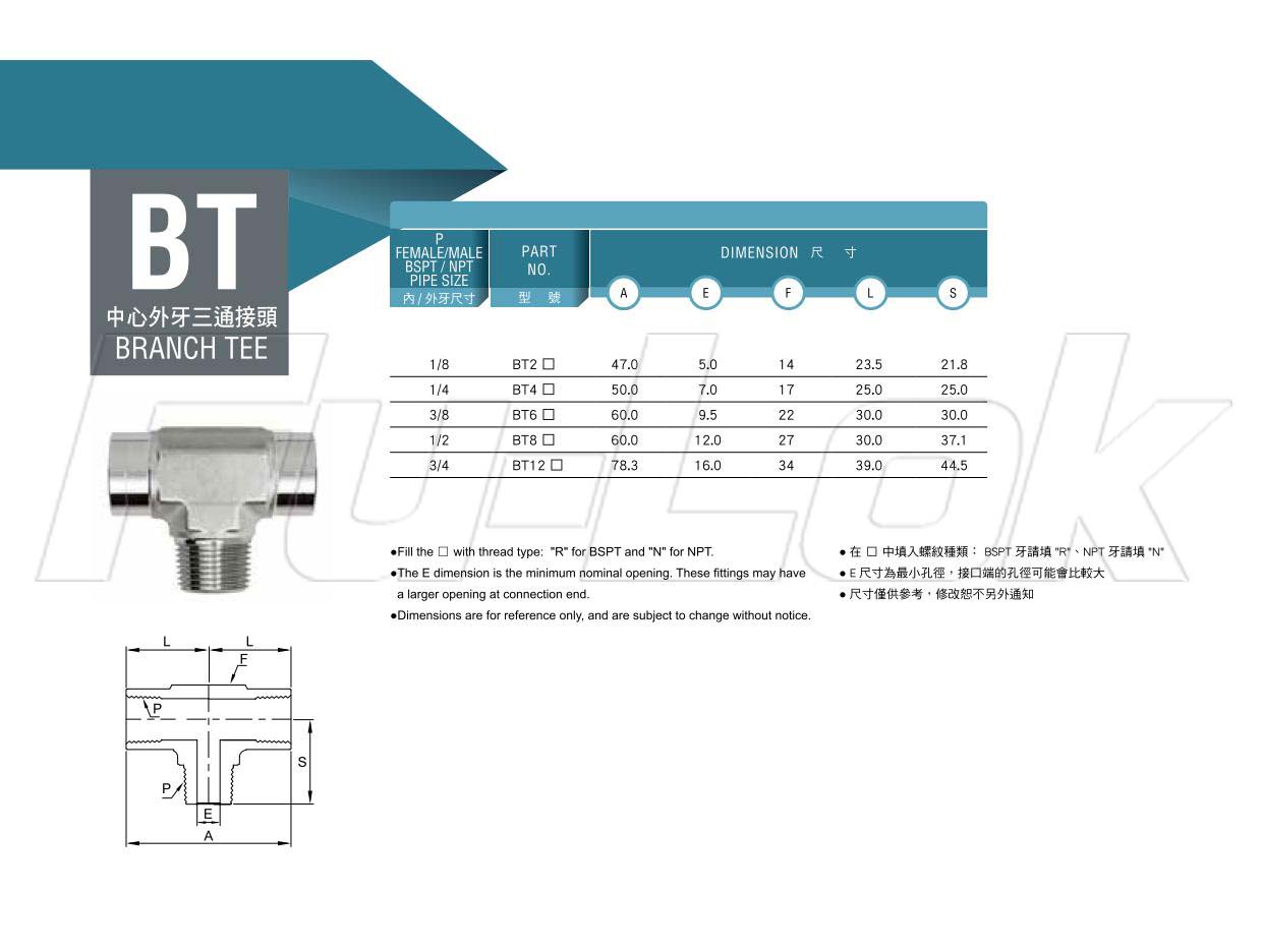 1.Thread Size: 1/8"~3/4"2.Thread Type: BSPT Thread(R)、NPT Thread(N)