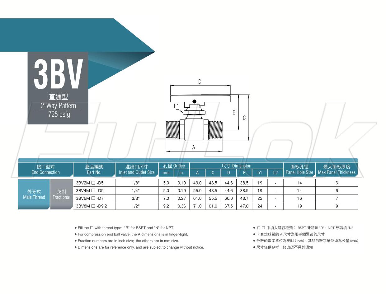 1.Maximum working pressure: 725 psig (50 bar) for casting body.2.Bi-directional flow on/off service for 2-way pattern.