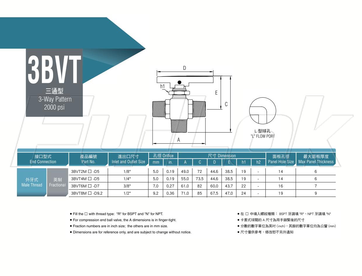 1.Maximum working pressure: 2000 psig (138 bar) for square bar stock body.2.Switch service for 3-way pattern.