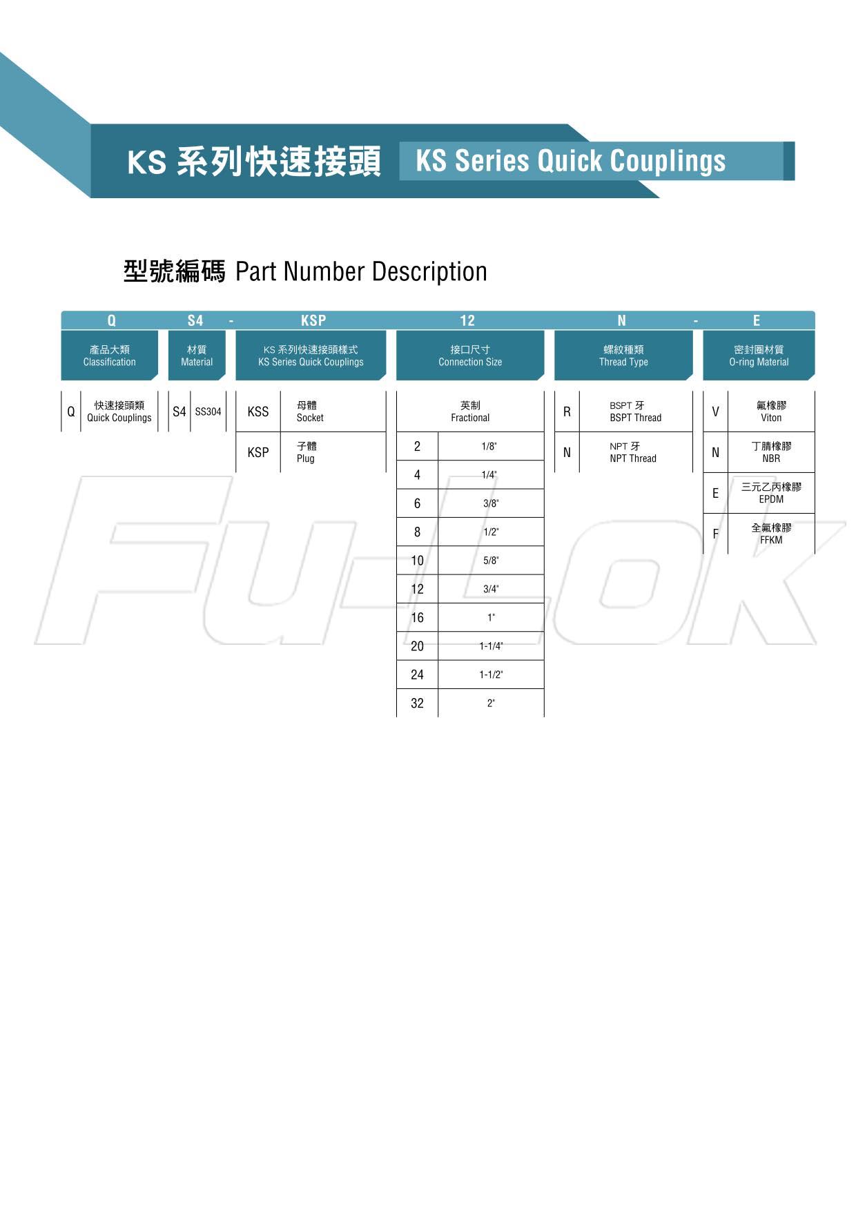 KS Series Quick Coupling-Part Number Discription