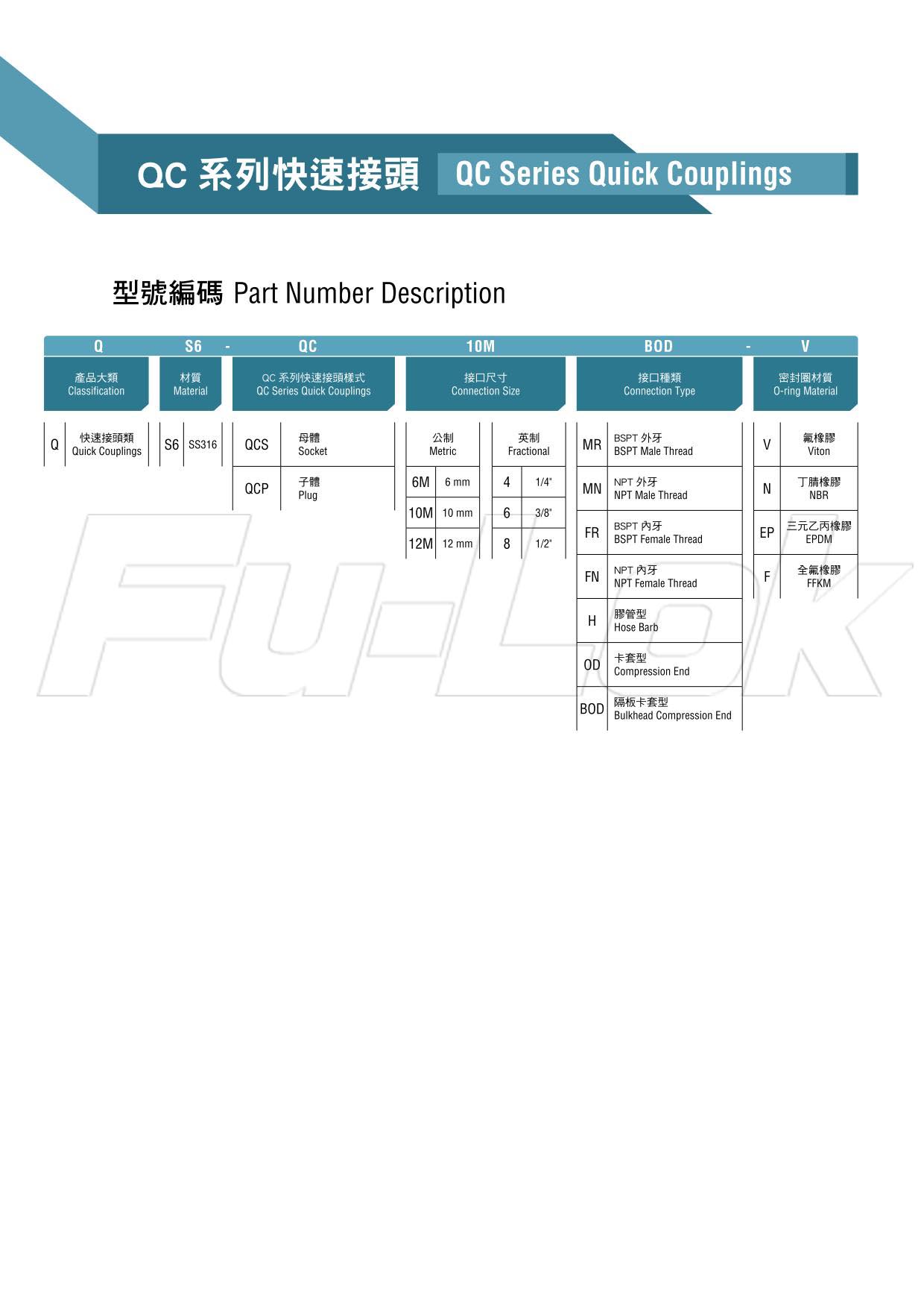 QC Series Quick Coupling-Part Number Description
