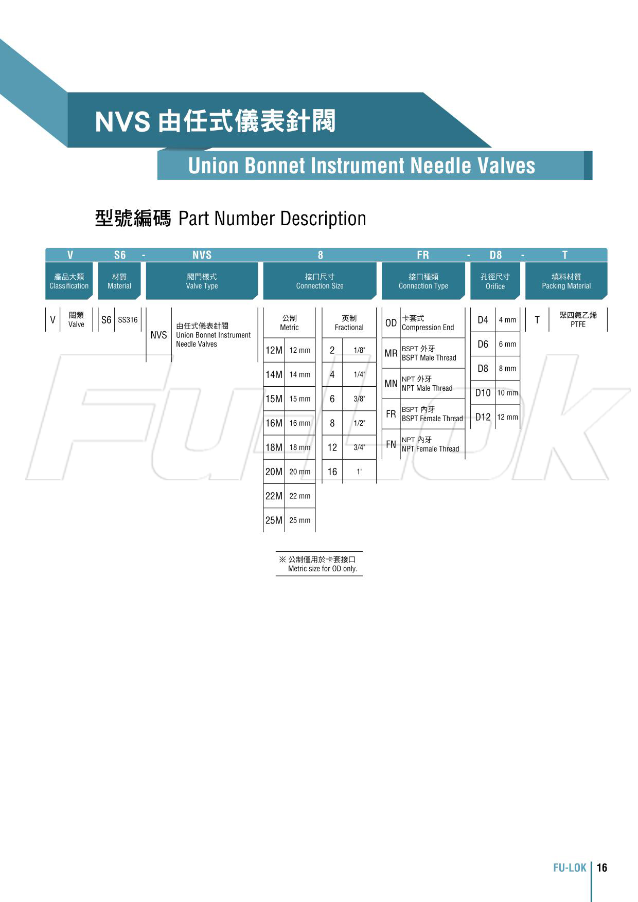1.Compression End, Metric:(OD)12mm~25mmCompression End, Fractional:(OD)1/2"~1"